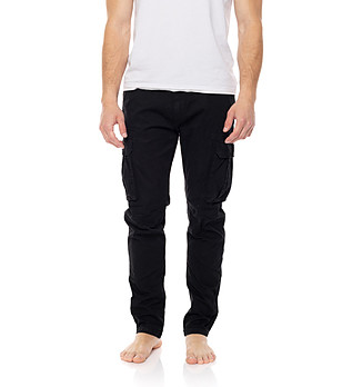 Pantaloni de trening negri din bumbac cu buzunare cargo