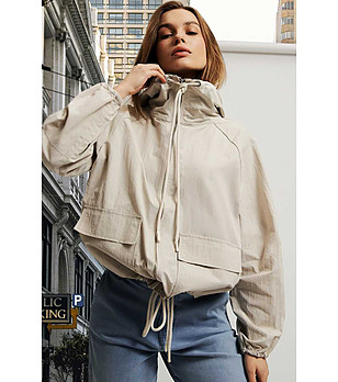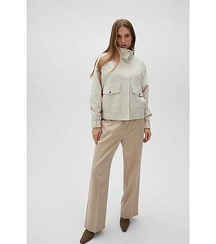 Geaca de dama bej deschis cu buzunare