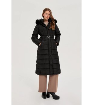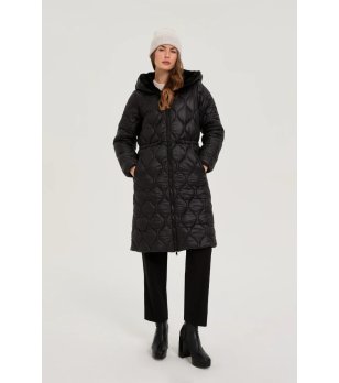 Jachetă neagră de iarnă pentru femei cu glugă