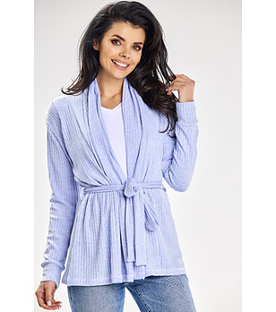 Cardigan de damă din bumbac grafit cu glugă Livia