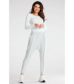 Pantaloni sport de damă din bumbac gri deschis