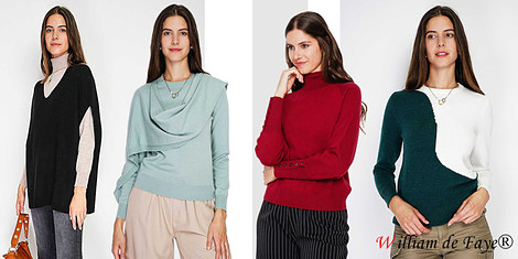 Pulovere de damă cu marca William de Faye - modele actuale într-o gamă diversă de culori și materiale cu un conținut ridicat de materiale naturale.