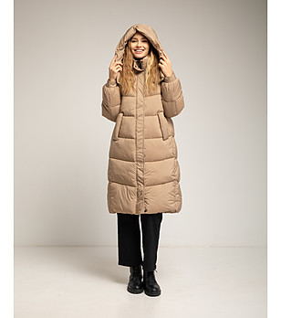 Palton bej de damă cu puf