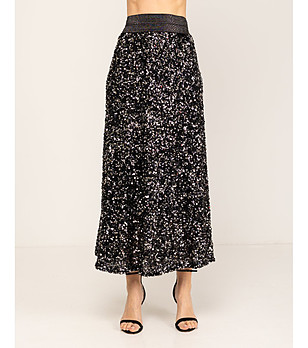 Fustă neagră cu paiete și talie elastică