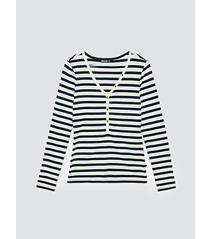 Bluză de damă din bumbac cu dungi albe și bleumarin, Mella
