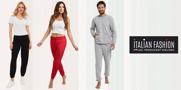 Selecție de îmbrăcăminte pentru femei și bărbați de la brandul italian de modă - bluze, pantaloni sport, fuste, tricouri, colanți, seturi, pantaloni scurți și multe altele. Mărimi până la 2XL.