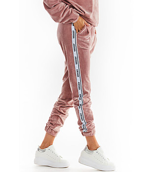 Pantaloni sport de culoare burgundia cu aspect de catifea Monika