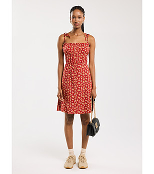 Rochie roșie cu imprimeu floral Casie