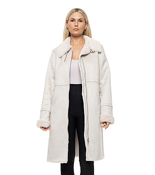 Palton ivory pentru femei cu guler din puf Nara