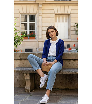 Cardigan bleumarin cu fermoar