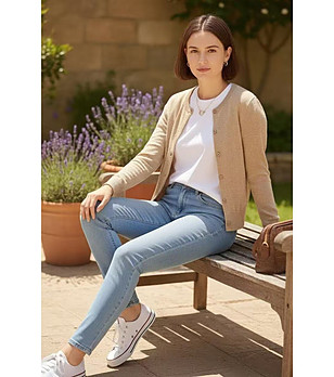 Cardigan bej pentru femei cu decolteu rotund
