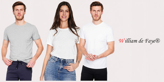 Îmbrăcăminte pentru femei și bărbați cu marca William de Faye - combinații oractice de culori, modele diverse și țesături cu un conținut ridicat de in și bumbac.