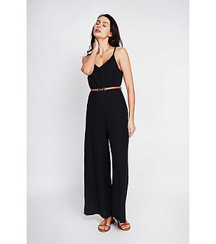 Salopetă de damă neagră din bumbac și in