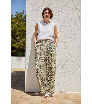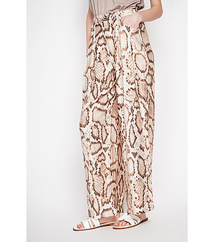 Pantaloni bej cu imprimeu animal