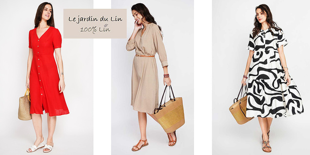 Rochii de diferite lungimi și mărimi cu marca Le jardin du Lin - țesături cu un conținut ridicat de in și bumbac, croieli pentru orice look și stil.