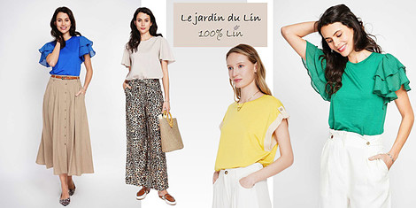 Îmbrăcăminte pentru femei marca Le jardin du Lin - confecționată din in și bumbac de înaltă calitate, într-o gamă cromatică actuală și modele pentru orice siluetă și confort.