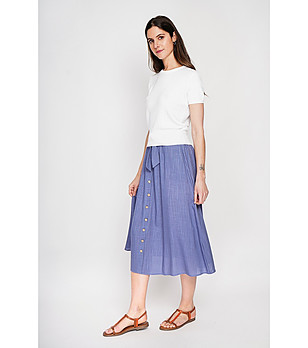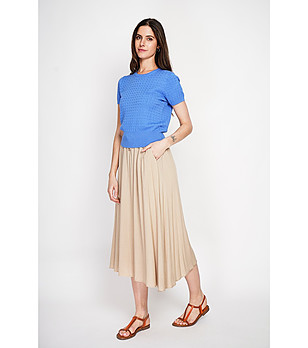 Pulover albastru cu mânecă scurtă pentru femei, din in