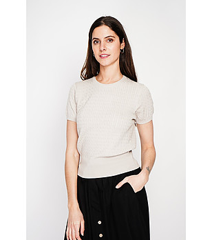 Pulover bej cu mânecă scurtă, din material in