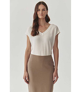 Bluză bej de damă cu mâneci scurte ZIMO 1