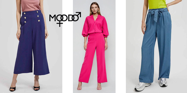 Pantaloni de damă cu marca Moodo - diverse croieli, modele actuale și materiale cu conținut de bumbac.