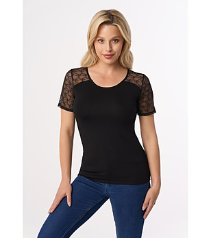 Bluză neagră de damă din bumbac cu nasturi WERTA