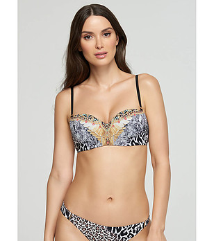 Sutien de baie în alb și bleumarin cu imprimeu Aura