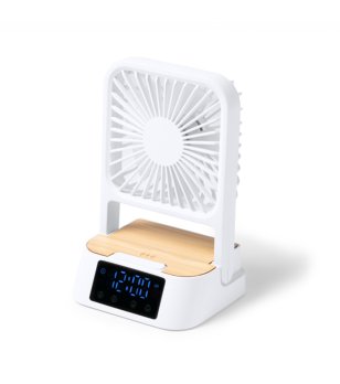 Ventilator de birou FUYI cu încărcător wireless și ceas, alb