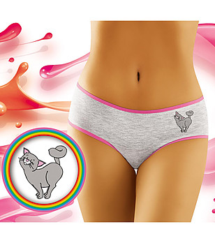 Chilot din bumbac Kicia în gri-melanj cu imprimeu