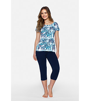 Șosete de damă din bumbac crem cu dungi bleumarin