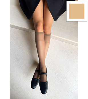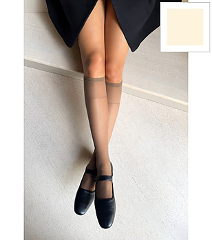Colecție de șosete lungi de la Veneziana. Modele cu bordură din silicon, pentru portjartier sau până sub genunchi.