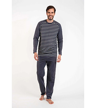 Pijamale bărbătești din bumbac Lars în culoarea grafit cu dungi