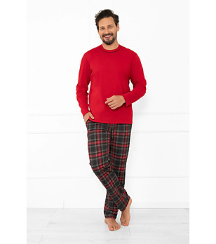 Pijama bărbătească roșie din bumbac cu mâneci lungi și carouri Rusoli