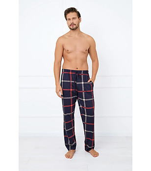 Pantaloni de pijama bărbătești din bumbac albastru închis, cu carouri Horton