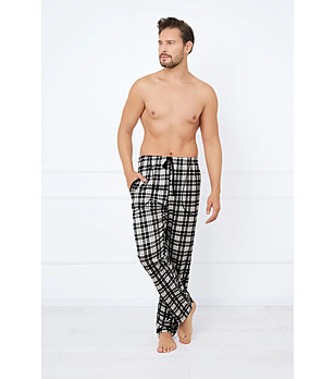 Pantaloni de pijama bărbătești din bumbac Klark, în carouri alb-negru