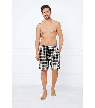 Pantaloni de pijama scurți din bumbac multicolori, în carouri alb-negru, Klark