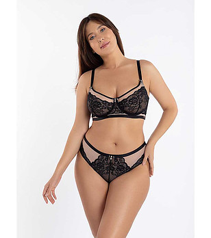 Sutien negru cu plasă bej și broderie