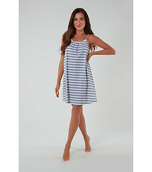 Cămașă de noapte din bumbac cu dungi în Bari gri și alb