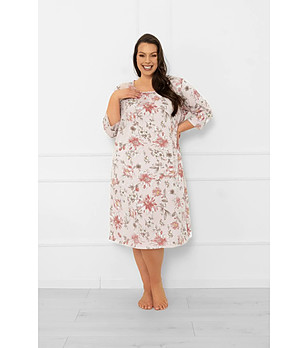 Șliț de pijama din bumbac, culoare cappuccino, cu imprimeu floral Kimuri