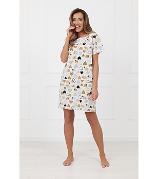 Cămașă de noapte albă din bumbac, cu mâneci scurte și imprimeu cu inimioare SORAJA
