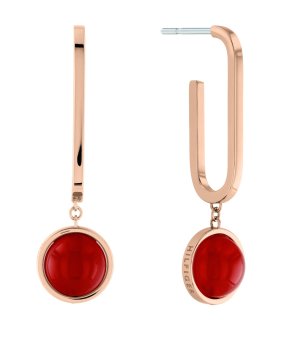Cercei de damă din auriu roz cu element roșu