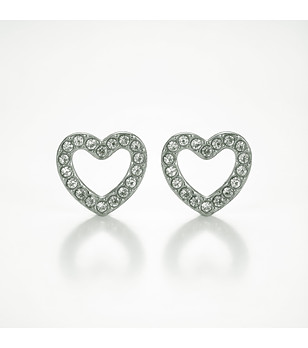 Cercei din argint cu inimioare și cristale transparente