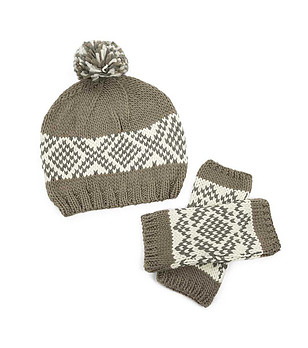 Set căciulă și mănușiîn tentă gri-bej pentru femei