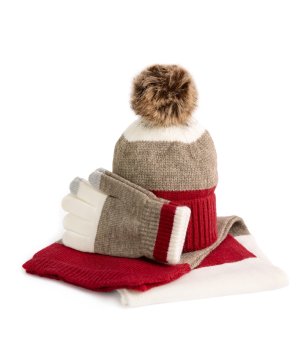 Set de iarnă pentru copii în bej închis, alb și roșu