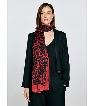 Eșarfă de damă roșie și neagră cu imprimeu animal