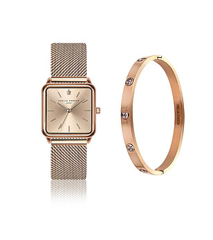 Set ceas și brățară de damă din aur roz Gold Plaza