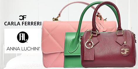 Genți de damă din piele naturală de la mărcile Anna Luchini și Carla Ferreri, în diverse modele cu accente metalice - alegeți clasicele pentru orice look.