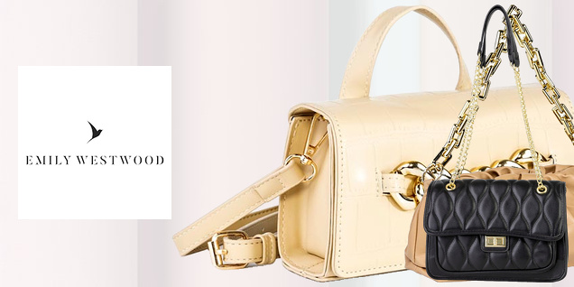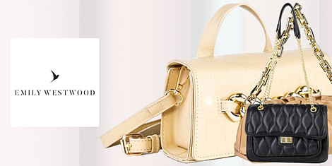 Genți marca Emily Westwood - diverse modele și dimensiuni într-o gamă cromatică actuală cu accente metalice din piele ecologică potrivită pentru orice look și stil.