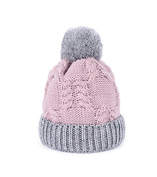 Căciulă în culori roz și gri cu pompon pentru femei