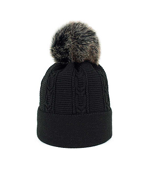 Pălărie pufoasă cu pompon pentru femei negre