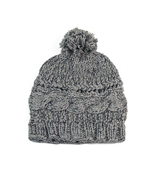 Pălărie de damă tricotată de culoare gri cu pompon